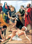 y ultrajado, es puesto en un sepulcro nuevo con todos los honores. Nicodemo