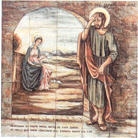 José se sabía verdaderamente afortunado por haber encontrado a María, una mujer que pensaba como él y tenía a Dios como valor más importante de su vida. Reconoce y agradece los designios de la Providencia divina. En medio de su deseo por agradar a Dios y amar a su esposa observa con sorpresa que María espera un niño. ¿Qué significa aquello? María era una mujer muy especial y en ese momento sospecha que algo grande ha debido suceder; un misterio divino como tantos otros que recoge la Biblia. José piensa que tiene que desaparecer de la escena y dejar que Dios haga como desee. Pero sufre, sufre muchísimo porque eso supone dejar a quien más quiere en el mundo. En ocasiones no se entiende lo que sucede. ¿Qué hacer entonces? Mirar a Dios y esperar. Dios es fiel; quien se apoya en él no quedará defraudado. |