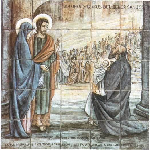 Ciertamente Jesús será signo de contradicción para quienes no amen la verdad, pero será sobre todo luz para millones de mujeres y de hombres de toda la historia. Las gentes se agolpan junto a la Sagrada Familia y al anciano sacerdote, y están mirando la Luz. Son los albores del cumplimiento de las palabras de Simeón, quien agradece a Dios haber podido ver al Mesías antes de morir. José es feliz con Jesús. El no es su padre en el orden natural, pero lo es espiritual y afectivamente mucho más que si lo fuera. José es también nuestro padre en el orden espiritual, y goza viendo la Luz que es Cristo en nuestras almas. Verdaderamente hay alegría en el cielo cuando nosotros pecadores nos arrepentimos, cuando reconocemos con sinceridad la verdad de Dios y la fe se hace vida en nuestra conducta. |