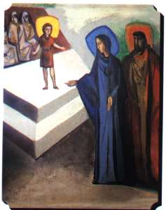 ![]() Llora María. Por demás hemos corrido tú y yo de grupo en grupo, de caravana en caravana: no le han visto. José, tras hacer inútiles esfuerzos por no llorar, llora también... Y tú... Y yo. Yo, como soy un criadito basto, lloro a moco tendido y clamo al cielo y a la tierra..., por cuando le perdí por mi culpa y no clamé. Jesús: que nunca más te pierda... Y entonces la desgracia y el dolor nos unen, como nos unió el pecado, y salen de todo nuestro ser gemidos de profunda contrición y frases ardientes, que la pluma no puede, no debe estampar. Y, al consolarnos con el gozo de encontrar a Jesús ¡tres días de ausencia! disputando con los Maestros de Israel (Luc., II, 46), quedará muy grabada en tu alma y en la mía la obligación de dejar a los de nuestra casa por servir al Padre Celestial. |