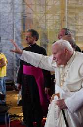 A ella confío los frutos de esta Jornada Mundial de la Juventud, para que asegure con su ayuda su eficacia con el paso del tiempo. Que nuestro encuentro traiga un despertar de la pastoral juvenil en Canadá. ¡Qué el entusiasmo de este momento sea la chispa que se necesita para iniciar una nueva era de poderosos testigos del Evangelio! Deseo anunciar formalmente que la próxima Jornada Mundial de la Juventud tendrá lugar en el año 2005 en Colonia, Alemania. En la imponente catedral de Colonia se honra la memoria de los Magos, los sabios de Oriente que siguieron la estrella que les llevó hasta Cristo. Como peregrinos, vuestro camino espiritual a Colonia comienza hoy. ¡Cristo os espera allí para la XX Jornada Mundial de la Juventud! Que la Virgen María, nuestra Madre, os acompañe en la peregrinación de la fe. Angelus Domini nuntiavit Mariae... |