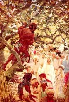a causa de la muchedumbre, porque era pequeño de estatura. Se